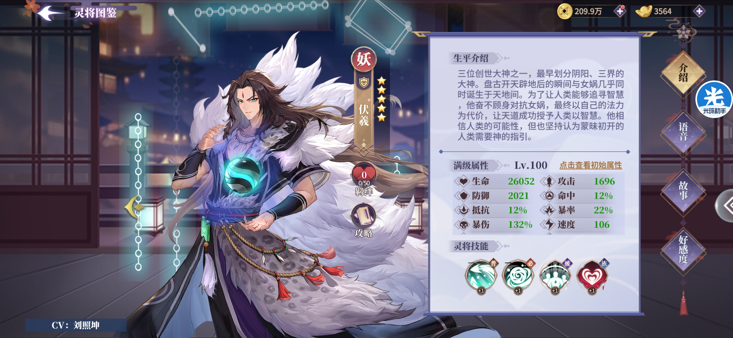 伏羲作为防御型灵将,被动庇护+护盾效果可以很好保证残血灵将生存,可以保证己方队友生存;自身残血急救效果+必杀主动回复效果可以保证伏羲血量,从而更好庇护队友,形成良性循环;同时伏羲以中毒和流血等血量流失类减益打伤害,换血能力较强,但妖族流血效果被削弱过,目前副本能力较一般,溟海龙渊等boss挑战玩法相对吃亏