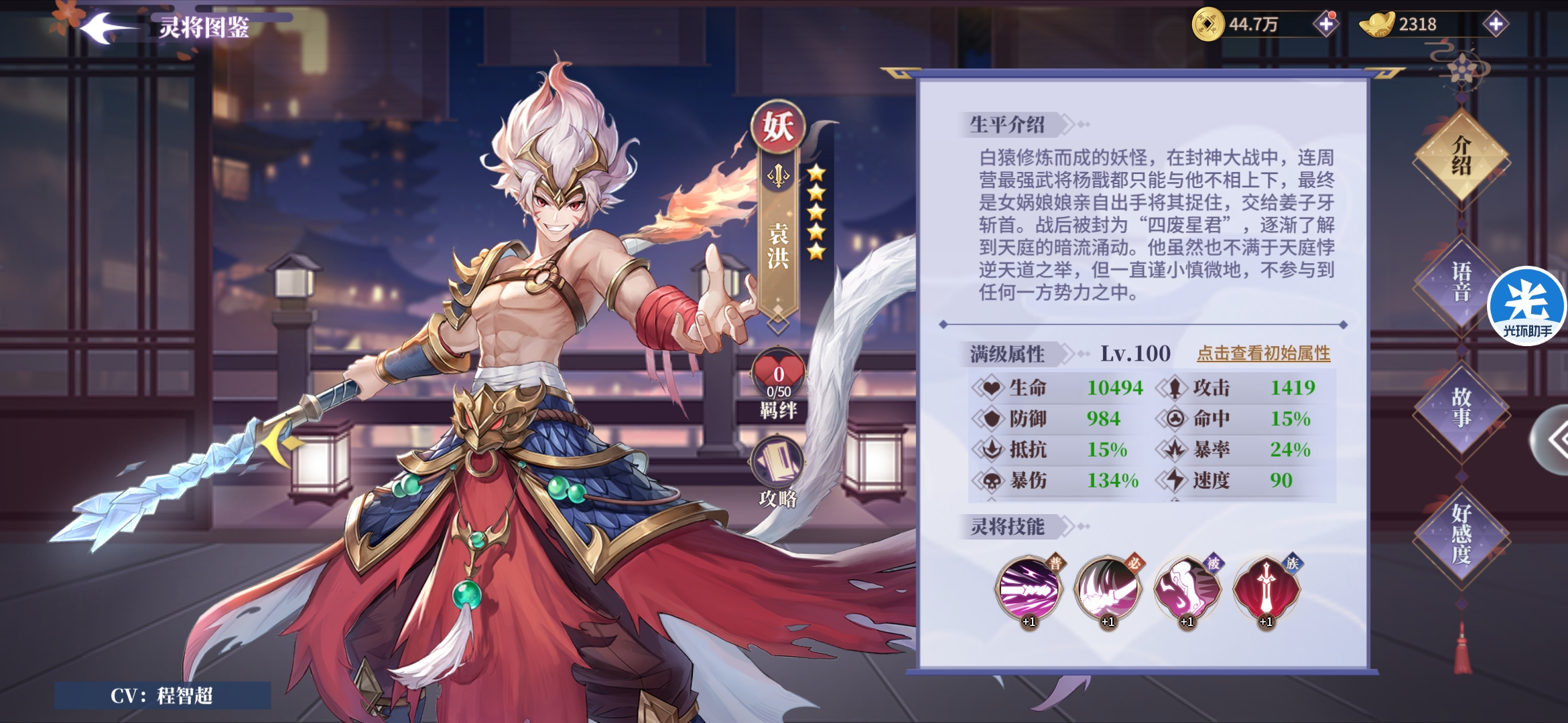 袁洪作为输出灵将生存能力极强,抗暴+受击自愈+圣盾效果可以保证自身生存能力,配合伏羲庇护换血能力极强;必杀虽爆发能力不如阿离高,但也拥有不错的单体追击和眩晕能力,适合妖族后期以防御流血消耗为主的阵容搭配;袁洪单独作为妖族攻击型灵将效果略差,输出上不如阿离,控制上不如石矶娘,虽拥有不错生存能力但无流血消耗机制,必须搭配伏羲才能发挥自身效果