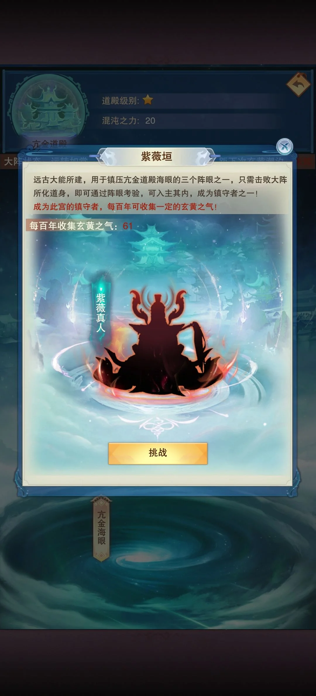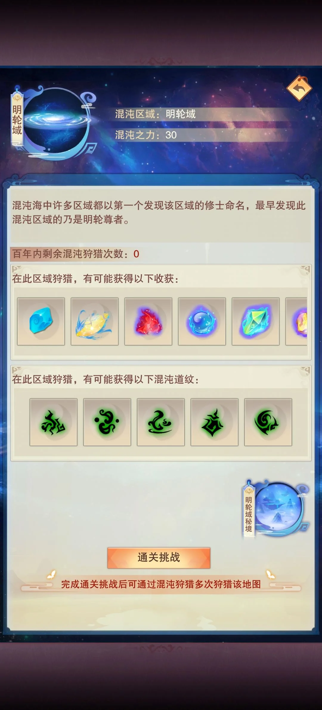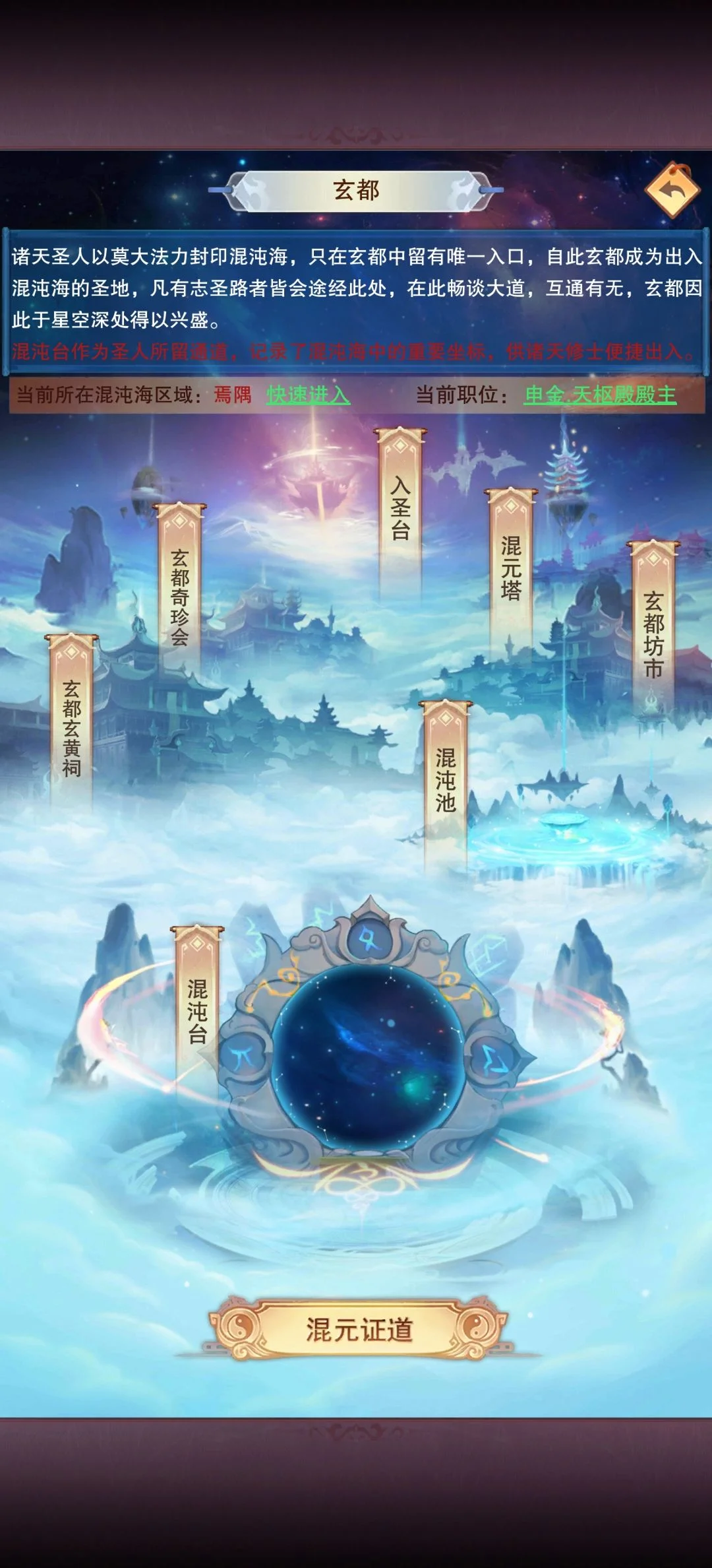 九玄悟道类似无限修炼。每日结算。提升混沌之力。
