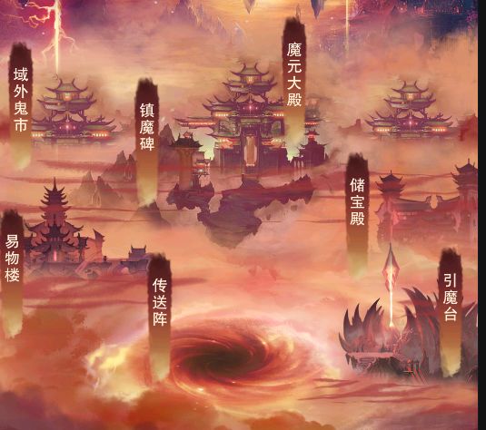 5)获得魔石后,可以去镇魔碑领悟魔元,魔元可以升级,详细的升级等详情正在做,现在没写。上述法宝会随机给破损的法宝和成品法宝,成品法宝可于易物楼兑换,破损法宝目前只能拍卖(均为npc)