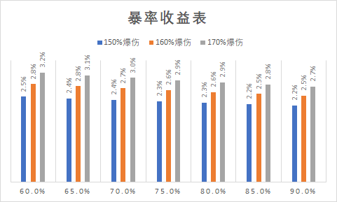 对于输出型灵将总体来说,前中期增伤收益排行为【爆伤>攻击>暴率】后期增伤收益排行为【爆伤>暴率>攻击】,对于装备神兵选择上推荐以固定属性为攻击优先(固定属性评级为A,其他属性加成可以更高);攻击收益随着攻击倍率逐渐下降,由4倍增伤2.5%降低至6倍1.7%,前中期收益更高;爆伤收益随着爆伤增加而小幅降低,但总体收益远优于暴率和攻击,增伤是其一倍;暴率收益随着爆伤增加而小幅提升,后期收益更高