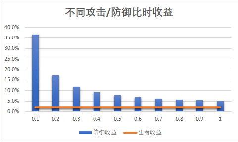——横坐标为(攻击灵将攻击/防御灵将防御–1),纵坐标为收益