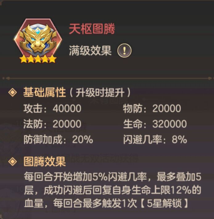 图腾:天枢图腾。图腾的基础属性洗闪避就可以。而且天枢图腾每回合增加百分比闪避,并且闪避成功后回复生命。天枢图腾是闪避流貂蝉的核心配件。