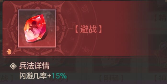 兵法:核心兵法是避战可以提供15%的闪避几率。其他兵法带肉兵法就可以。