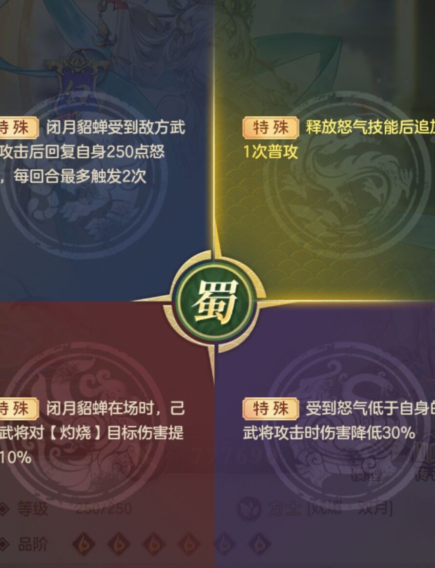 耳听八方和不动如山都可以加强貂蝉在实战中的生存力,满天过海可以有效针对减怒神器和减怒武将。