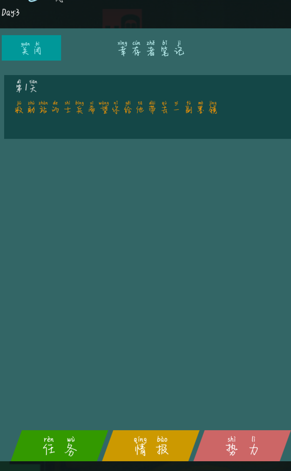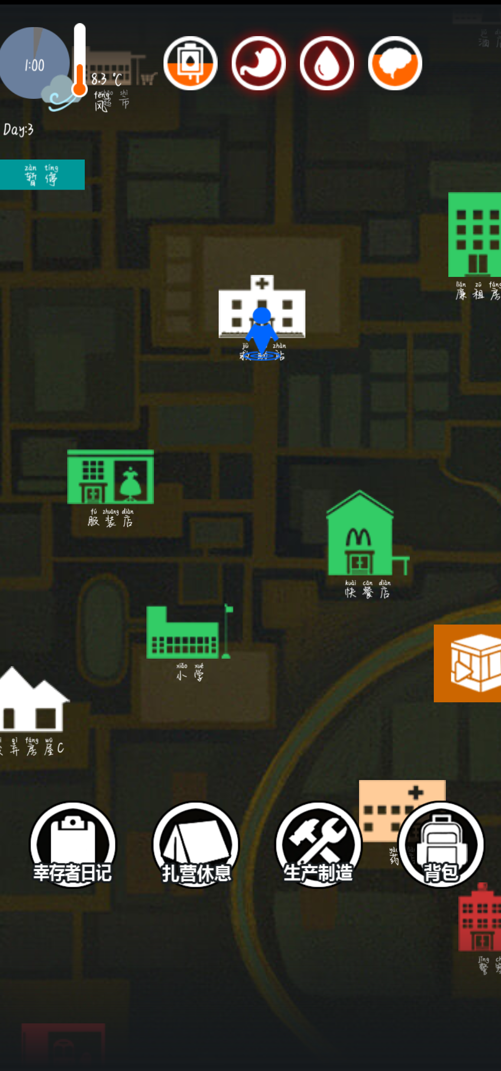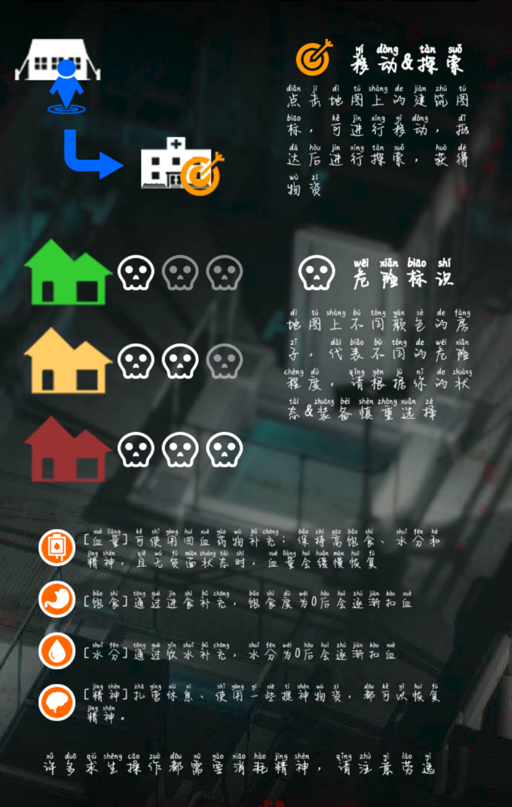 一般建议新手跟着幸存者日记走,一步步完成任务参加帮派势力之类的组织,毕竟末日最可怕的还是人心,一个人是很难活下去的,如果想多搜集些物资与情报就在绿色的建筑物中进行,毕竟手无寸铁碰上丧尸只能拳头硬钢👊,搞不好就删档重来了哒。
