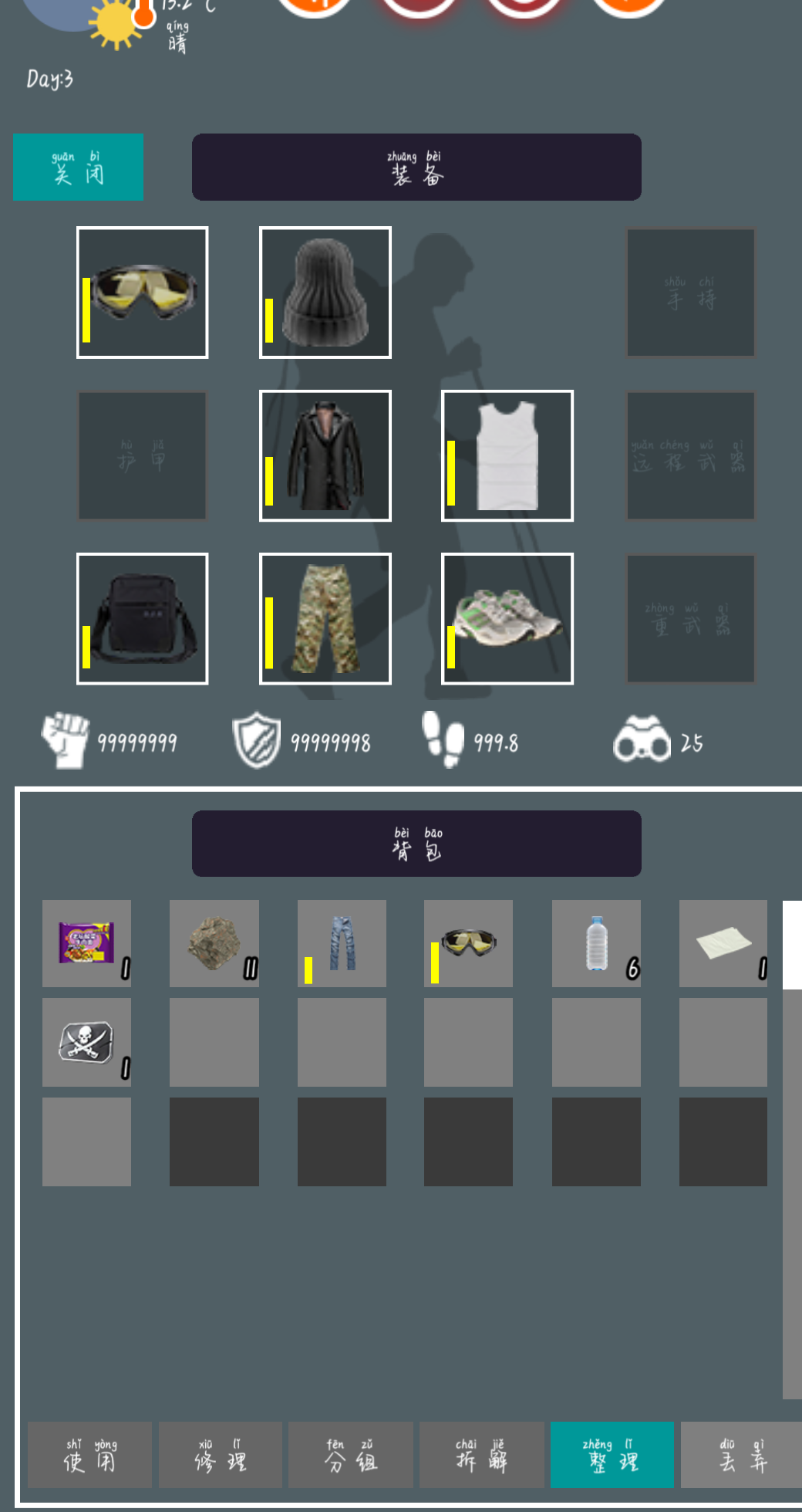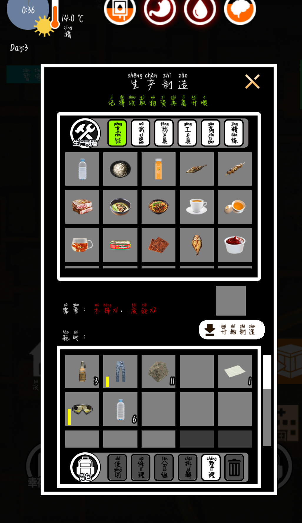 如果选择自己搜集物资,也是很需要运气的,有可能会一连几天都找不到自己想要的物资,而自己的背包却被其他物资填满了,背包填满后就无法再装下物资,只能放在自己的房子里或者丢弃,可是对于新手来说造房子可不是什么易事。