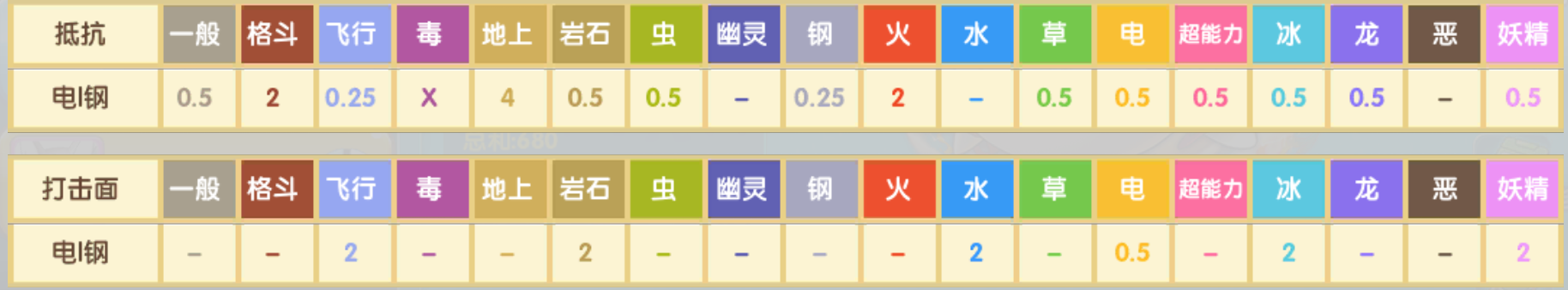 四倍抵抗飞行,钢(4倍抵抗的有两个属性)