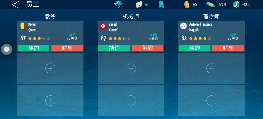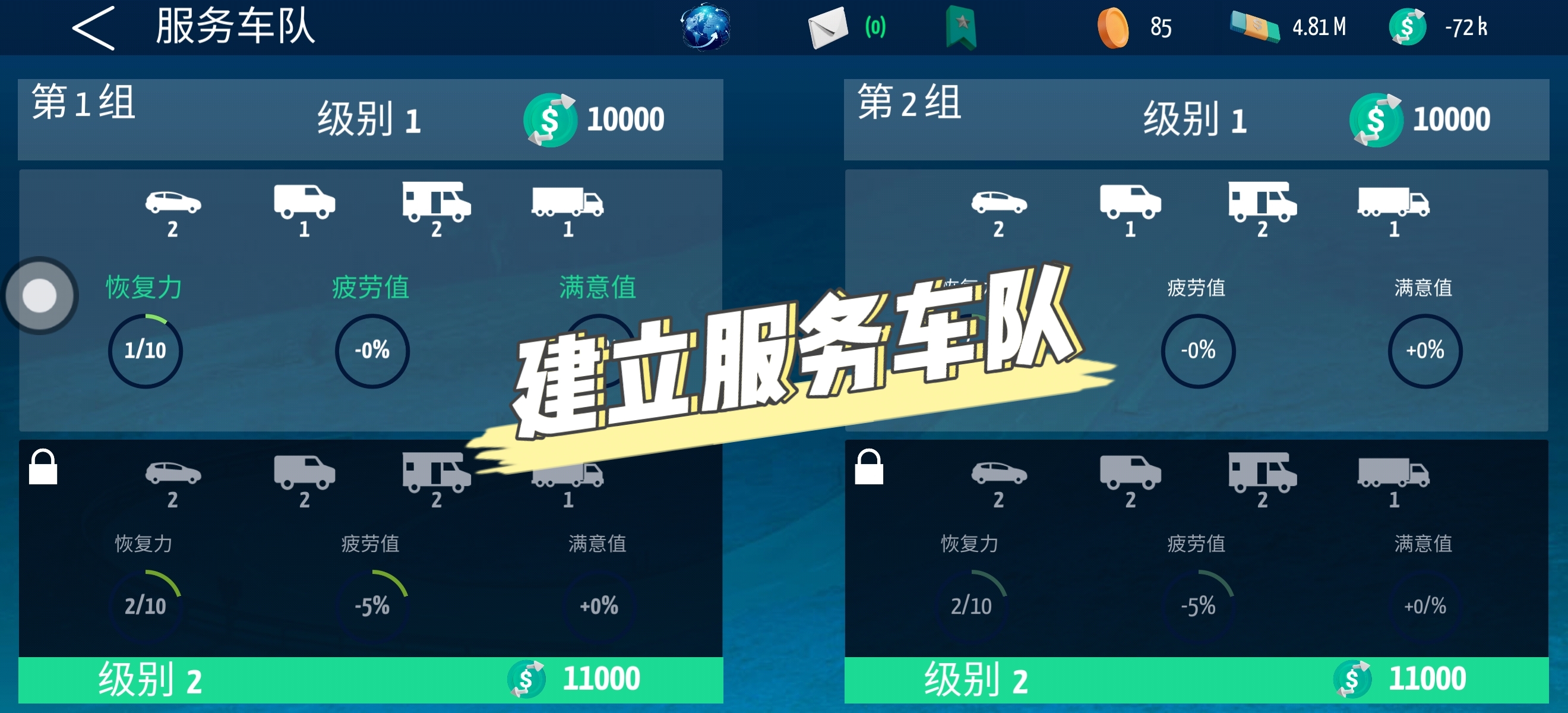 ☑️雇用服务车供应商,建立最强车队,帮助车手们在赛事中获得更理想的成绩,让他们得到更好的休息。