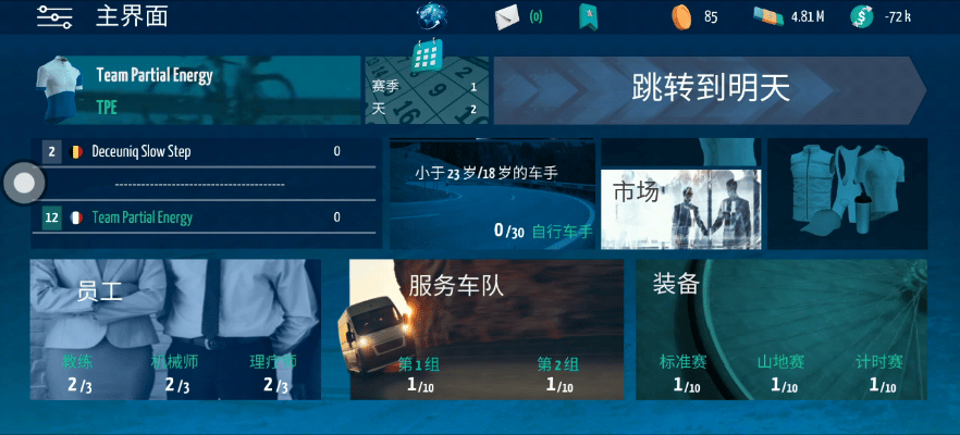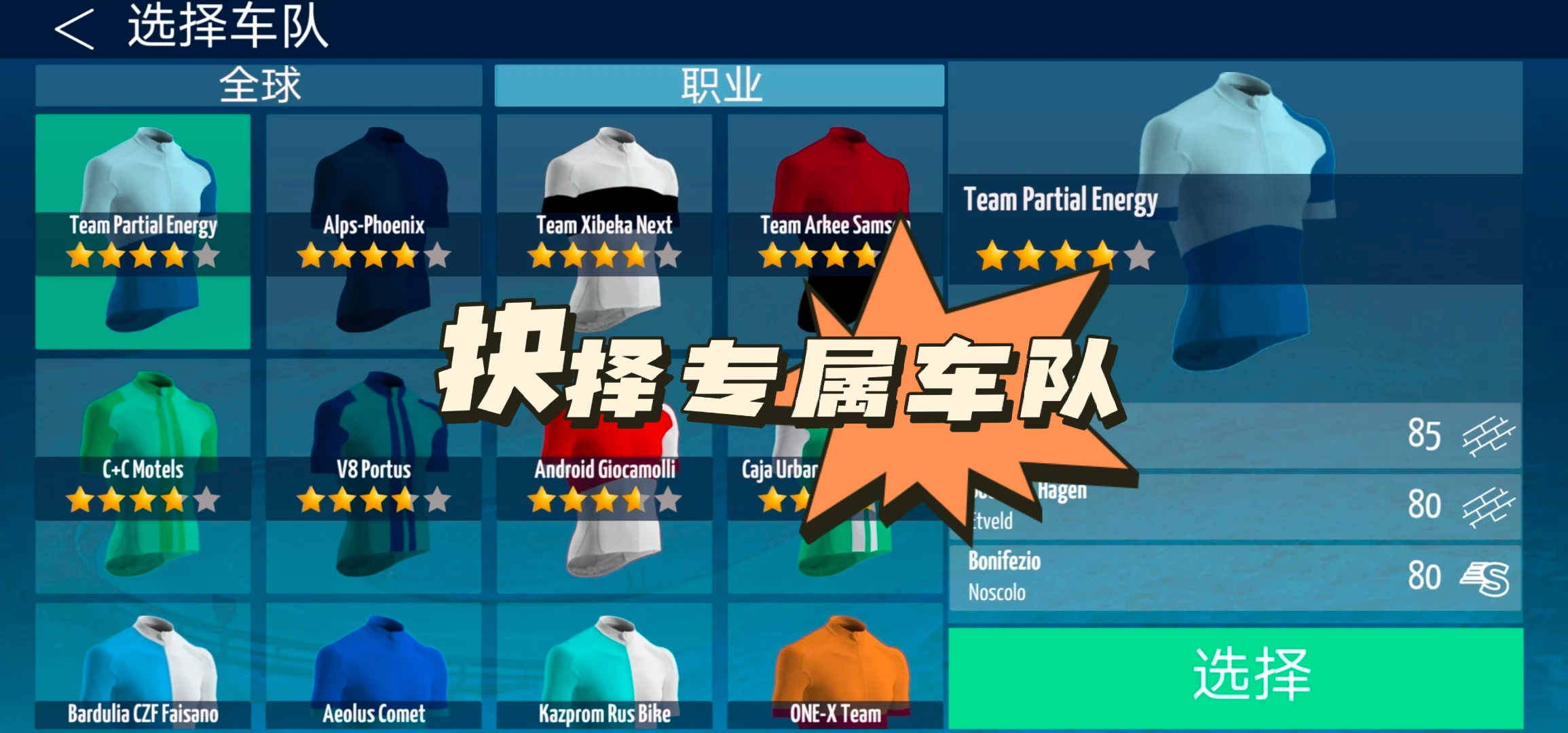 训练车手🚴🏻,安排车手前往参加全球各地的赛前训练营⛺️,提高车手能力属性。控制车手体质、个人状态和赛季中积累的疲劳感,让车手在最棒的比赛中有最佳的表现。管理您的员工🏃,包括机械师、理疗师、医生、经纪人、教练、心理医生等,与运动装备制造商沟通,获取市面上最强性能自行车,调查研究自行车零部件改进方案,力争在比赛中取得最佳成绩。