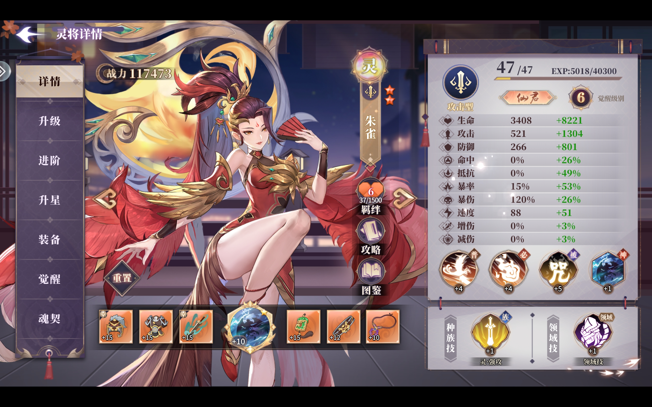 值得一提的是朱雀的种族技,在灵族中朱雀的种族技攻击力加成是最高的,这也就意味着朱雀的攻击上限更高(灵族不同于其他种族,灵族往往分散于各个种族阵容之中)。因此将朱雀作为主c培养,可以更好的展现出其强大的攻击力。
