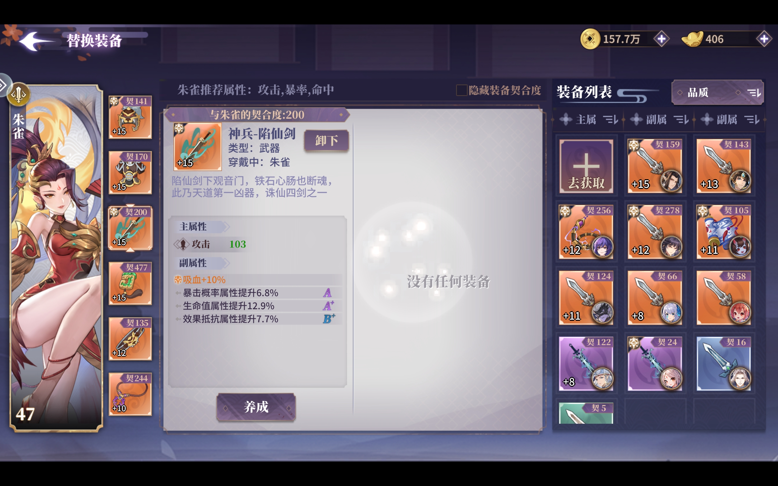 因此在定位上,朱雀主要是作为队伍主C,需要更多的资源进行培养,装备与魂契优先搭配。