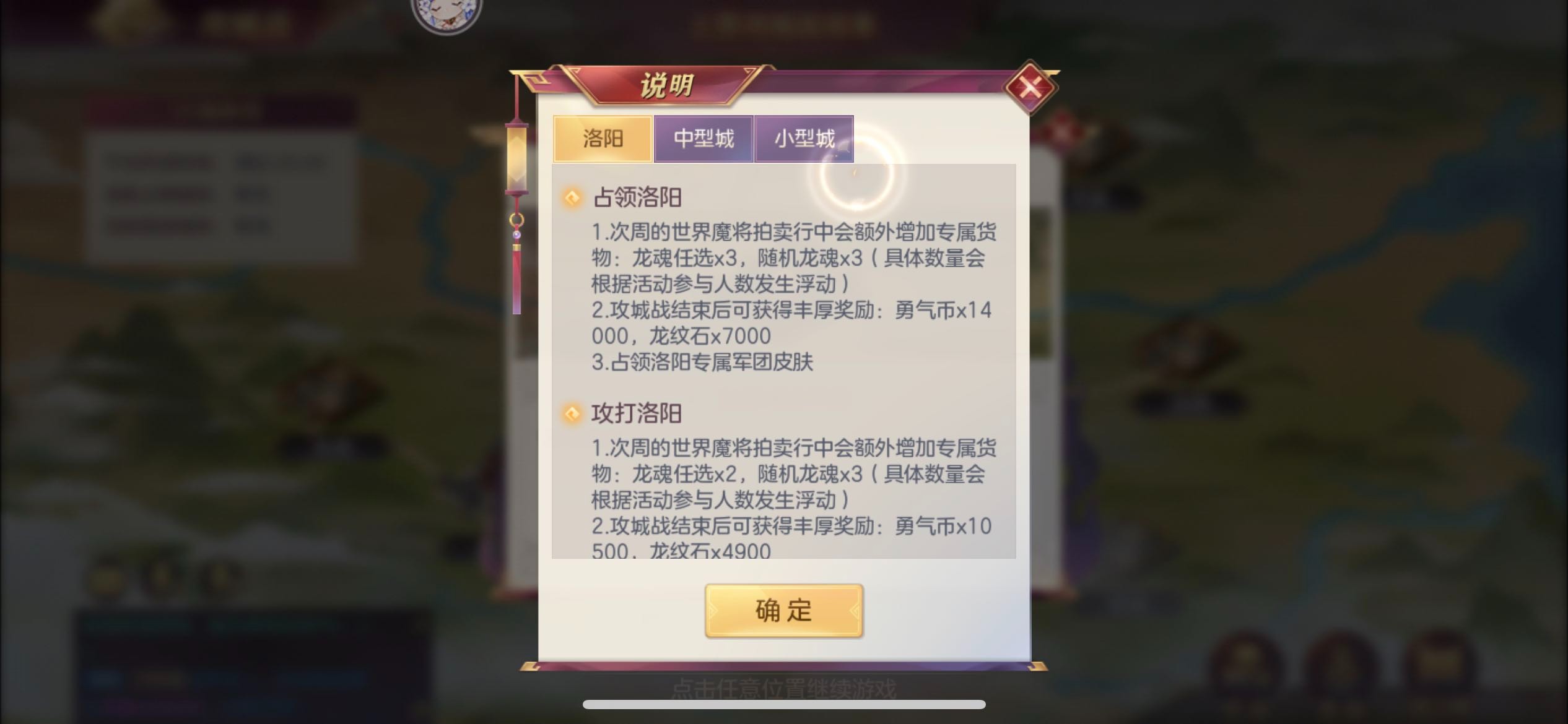 答:一直有被问到,宣战洛阳打输会不会奖励差。洛阳成功>洛阳失败>中型成功>中型失败>小型成功>小型失败,打完有没有城池不影响任何东西,反正第二天(周一)全部重置归零的。