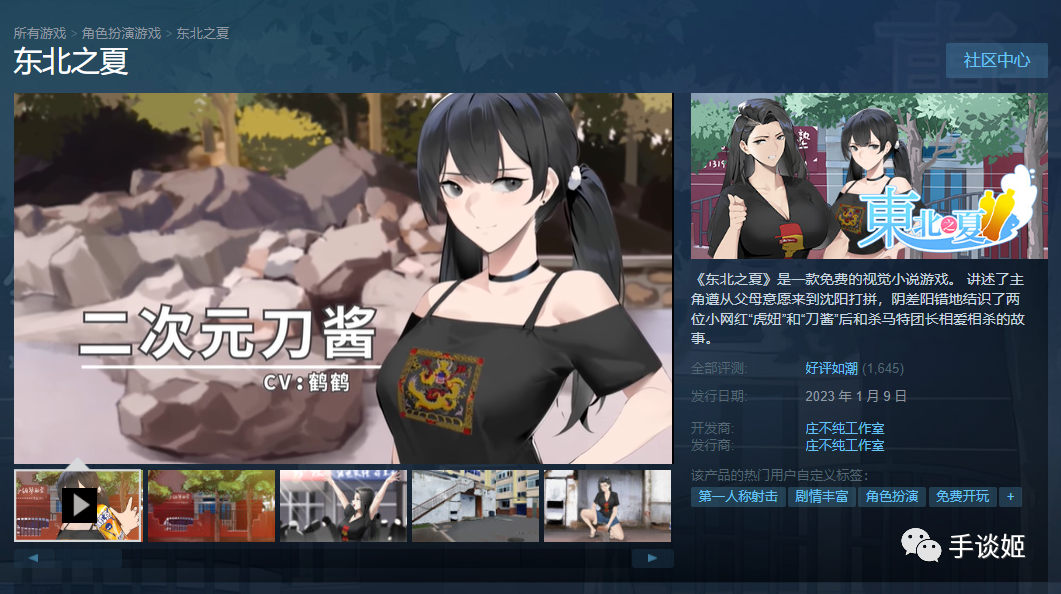 昨日,以B站up主“庄不纯”主导制作的游戏《东北之夏》在Steam免费上架了,这是一个以性转版虎哥刀哥杀马特团长、以东百往事为基底改编的galgame,大家可以在游戏里与东百往事的演员们与虎妞、刀酱和杀马特团长共同谱写一段浪漫的故事。