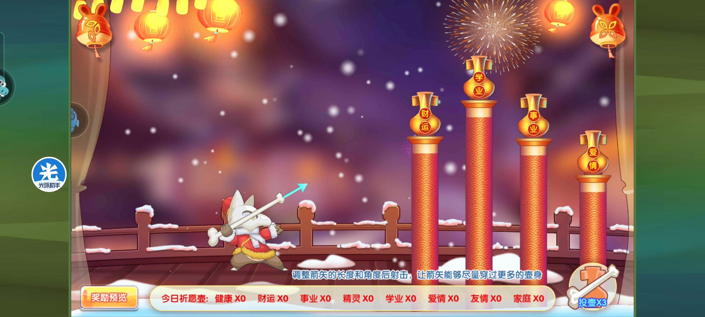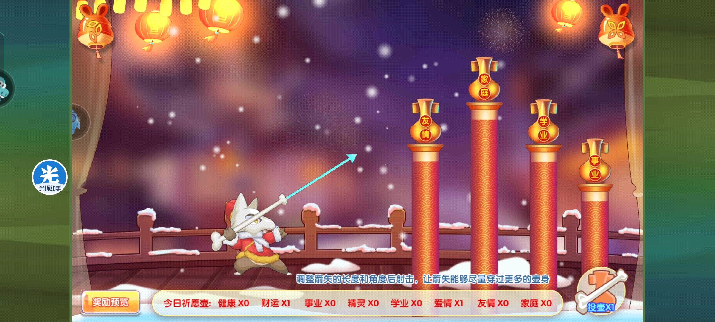 调整箭矢的长度和角度后射击,让箭矢能够尽量穿过更多的祈愿壶!箭矢穿过壶身时,训练师能够获得祈愿壶身对应类型的祈愿。