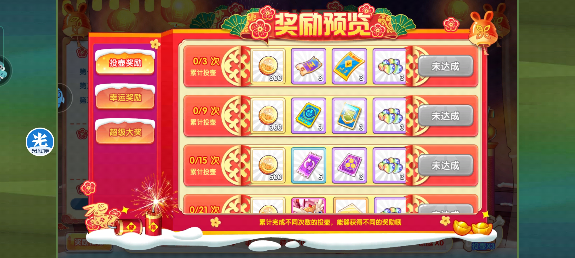 幸运祈愿奖励:从每晚20:00开始,每隔5分钟抽一次,共3轮( 20:00-- 20:05-- 20:10 )