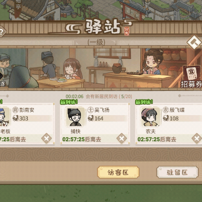驿站则是工种的获取主要途经,需要使用道具:招募卷,通过不同的招募卷子召唤出来的工种等级以及收益都不相同。