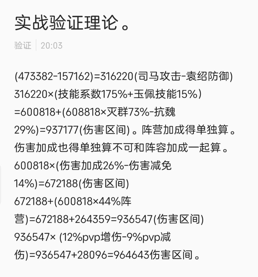 我们把司马懿和袁绍代入上面的特殊算法公式:得出来的伤害区间是≈*×波动伤害我们取120%≈*1。