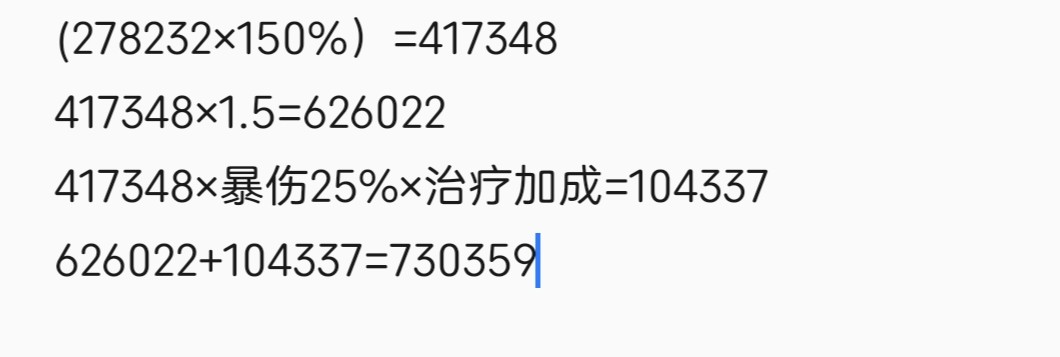 暴击治疗算法:【(攻击×技系)×1.5%】+【(攻击×技系)×暴伤】×治疗加成