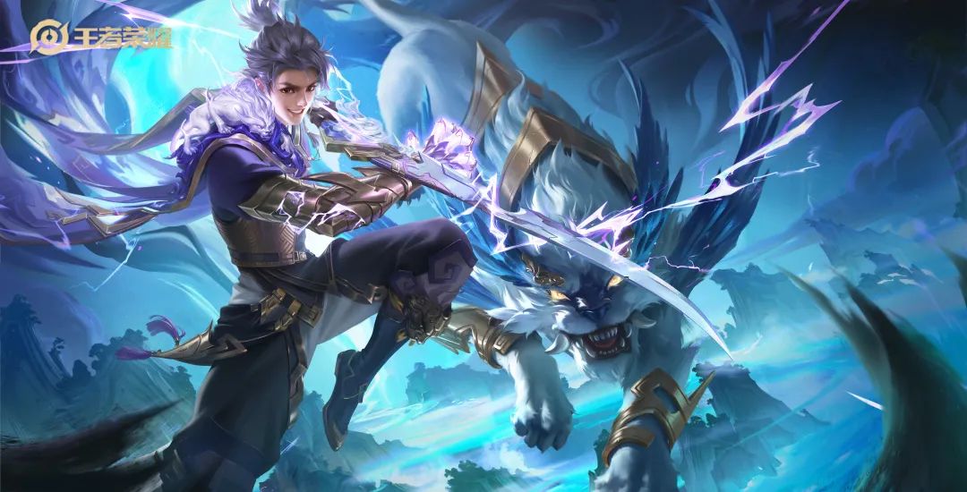 李信拥有冰霜与炽火两重力量。基于李信统御与狂暴双形态对应的冰火属性,进行技能特效的整体包装。火的热烈光明与冰的冷冽形成强烈对比。同时在技能表现中,灵兽诸犍也会出场和陪伴他作战。