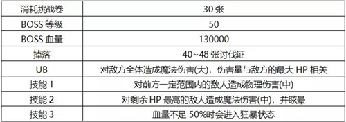 活动关卡所需体力BOSS挑战券掉落数量:Normal 1-1~1-5体力:8掉落:1~3