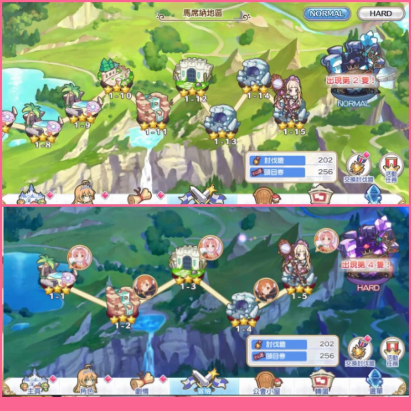初次通关活动关卡(Normal1-15,Hard1-2/4)的报酬共8个