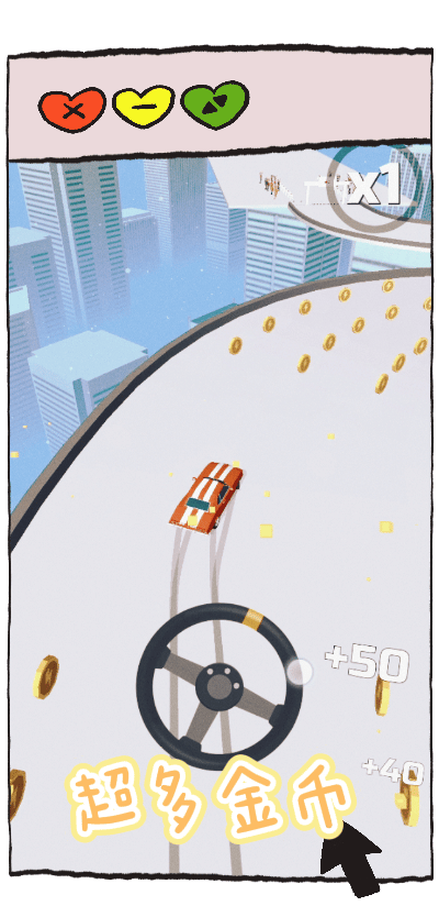 玩家需要控制赛车进行漂移,让赛车🏎顺利抵达终点🏁,赛道🎢有很多金币,再与其他玩家竞速时要瞅准👀时机拾取金币💰。