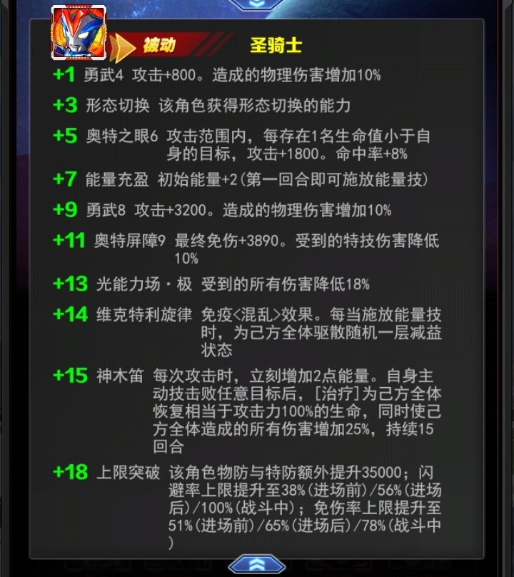 +11 奥特屏障9 最终免伤+3890。受到的特技伤害降低10%