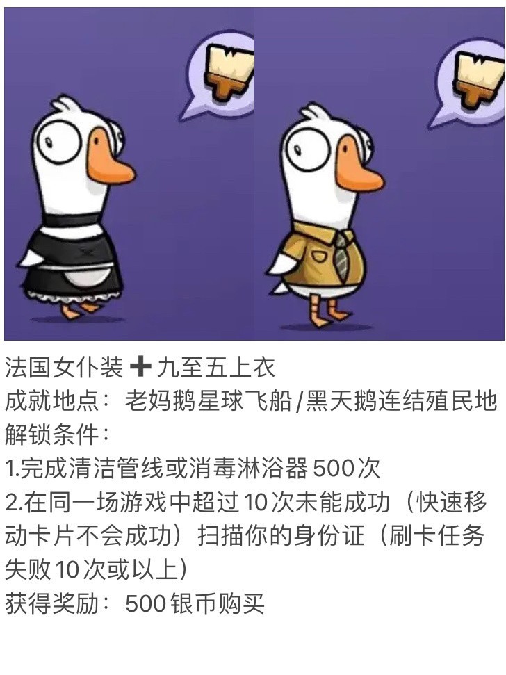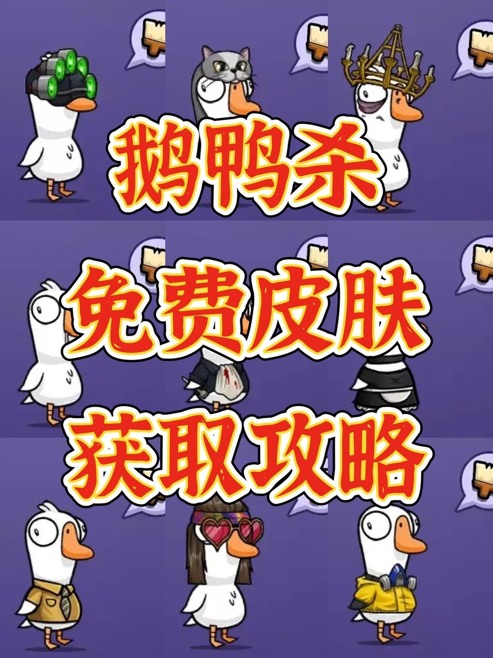 鹅鸭杀免费皮肤获取攻略!你的鹅该穿新衣服了~小布丁吃西瓜发布于 2023-01-31关注来啦!鹅鸭杀免费皮肤获取攻略,最全获取方法都在这里~ ⭐和平头发和时髦吉他套装 ⭐法国女仆装和九至五上衣 ⭐口水和围兜套装 ⭐猫猫帽和猫毛衣套装 ⭐吊灯冠套装 ⭐船长服套装 ⭐夜视镜套装 ⭐消灭服套装 ⭐消耗服套装 ⭐燕尾服套装 ⭐清洁服套装 ⭐拖加服套装 ⭐太空衬衫 转载自小红书博主小脸鱼肝攻略