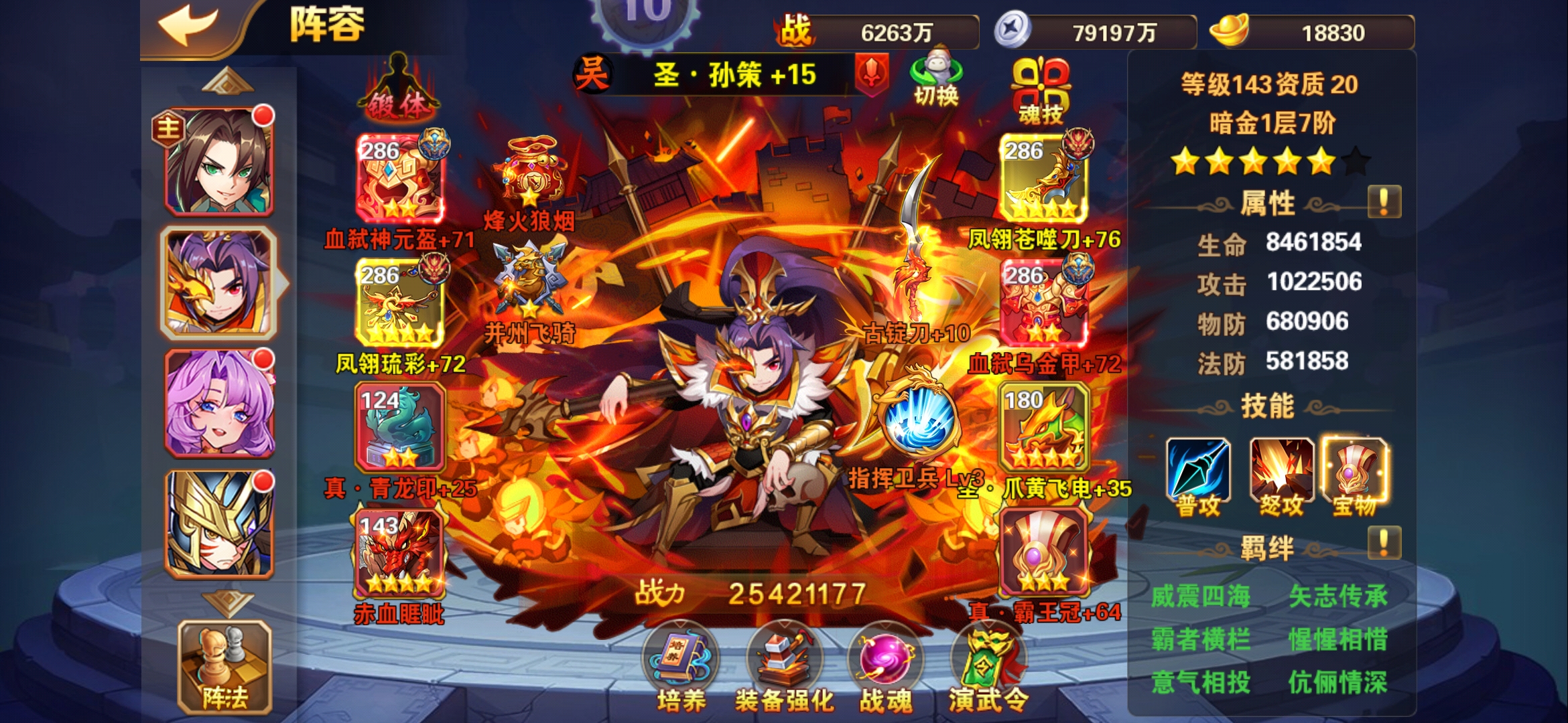 大佬们看一下,我是应该先把孙策的装备全部升到4星