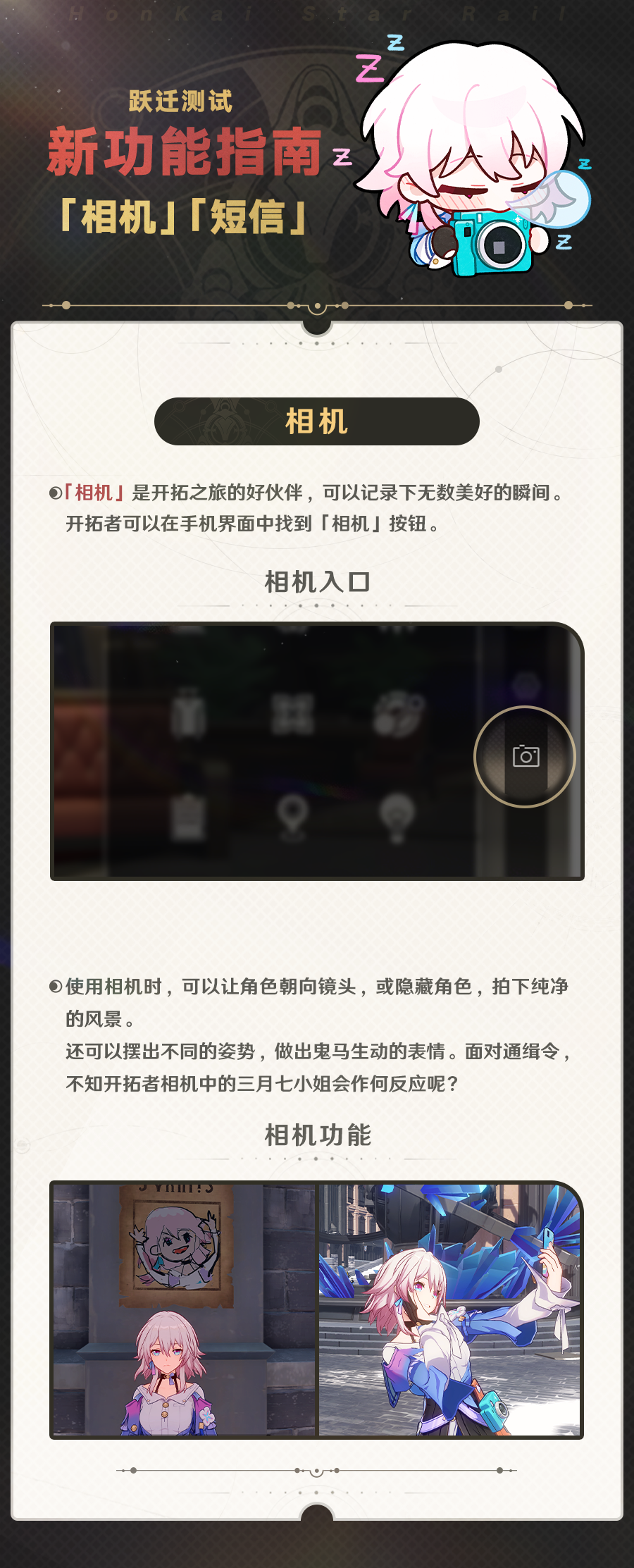 新功能上线 | 杨叔用的表情包竟然是……灼热阳阳发布于 2023-02-05关注 嘘——一个好消息:开拓者可拿着手机边走边拍,还能在短信中收到表情包啦!快去试试看帕~ ※以下内容介绍均为「跃迁测试」版本,不代表最终游戏品质。