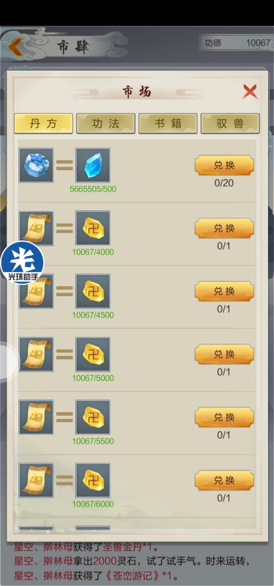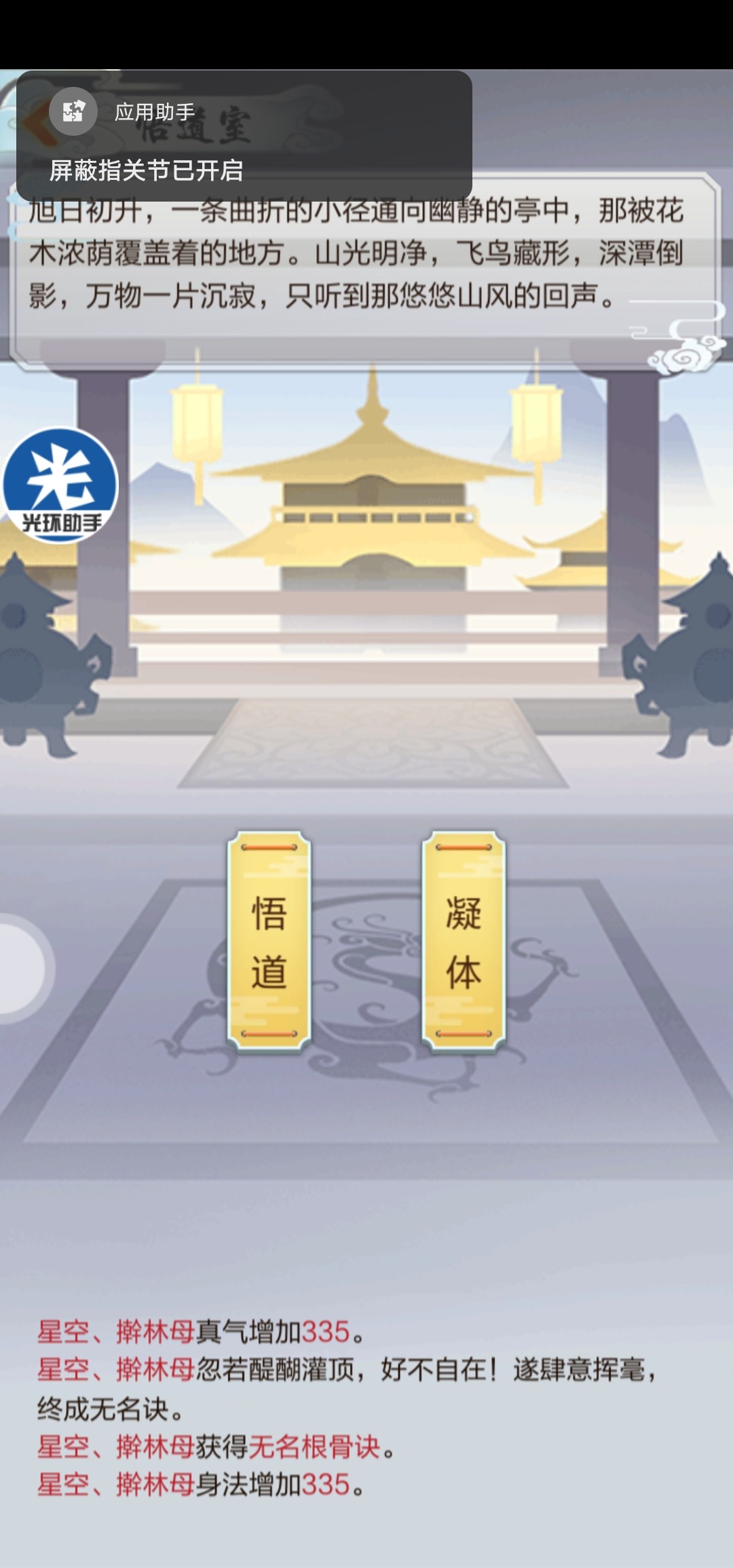 悟道室:如果道友背包内有参天造化露,建议道友开启悟道室进行悟道哦,(凝体等后期),每10次有一本绝学,上限20本