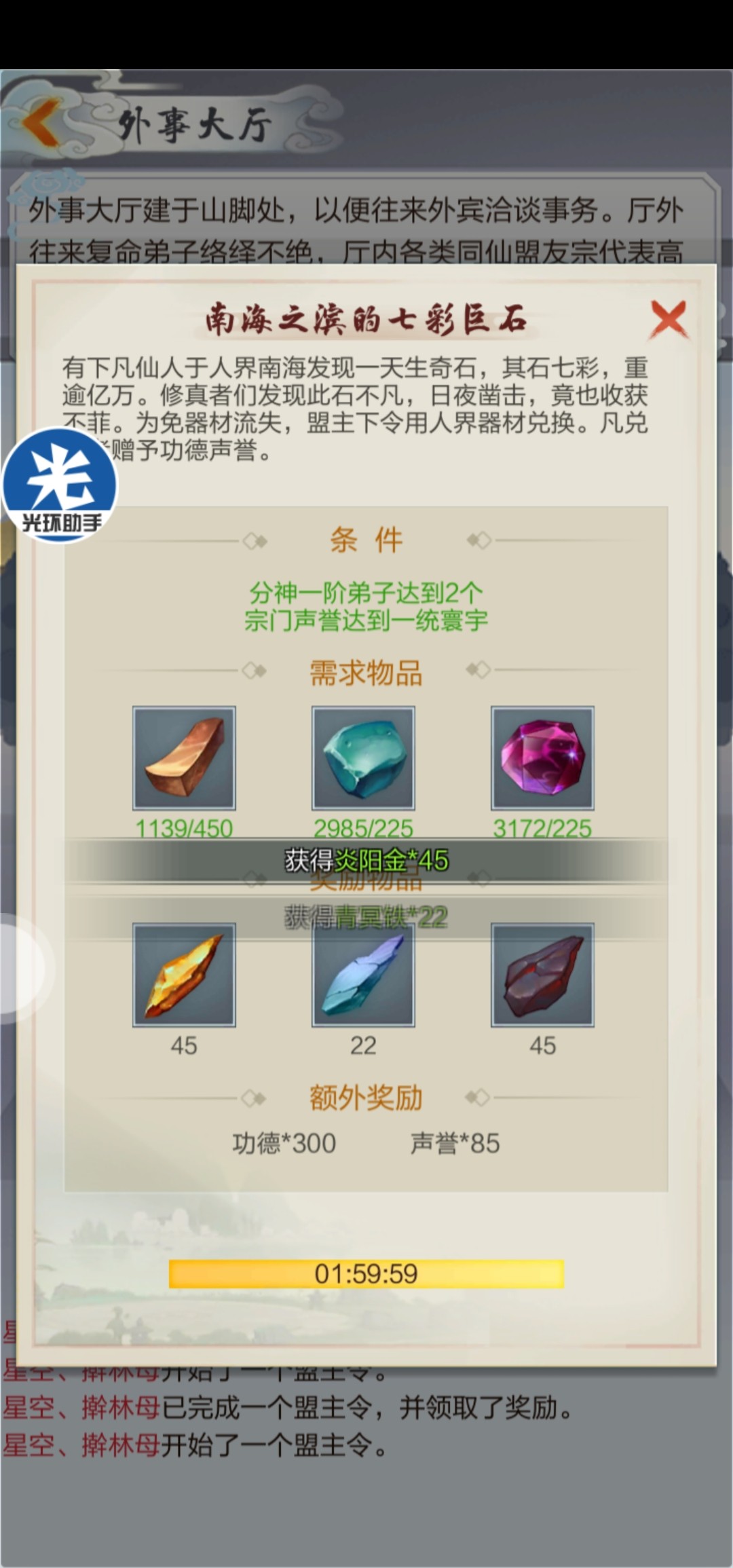 如果道友飞升那天刚好在周日,并且是8点之前,那么道友就可以在八点整去仙盟内的排行榜领取奖励哦,(山头盟主奖励翻倍并且多一瓶参天造化露)
