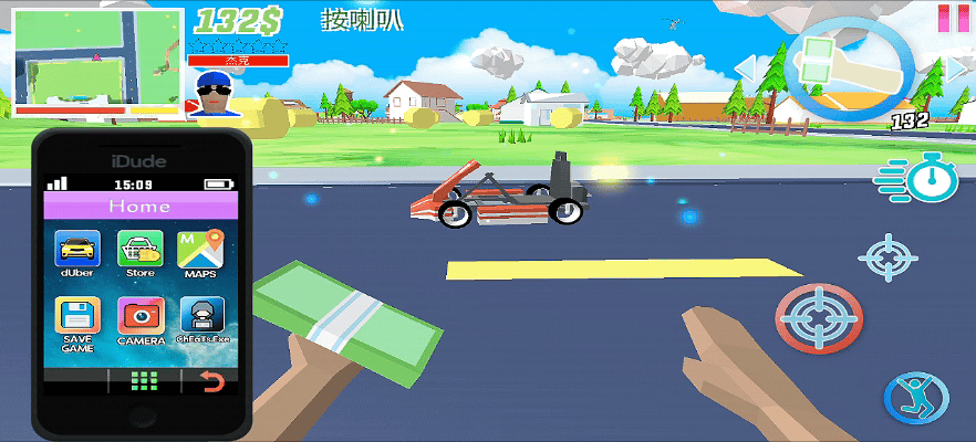 ✍进入游戏后可以看到教程✅,滑动摇杆🕹控制移动,使用箭头➡️可以切换武器,点击手机📲可以订购汽车。