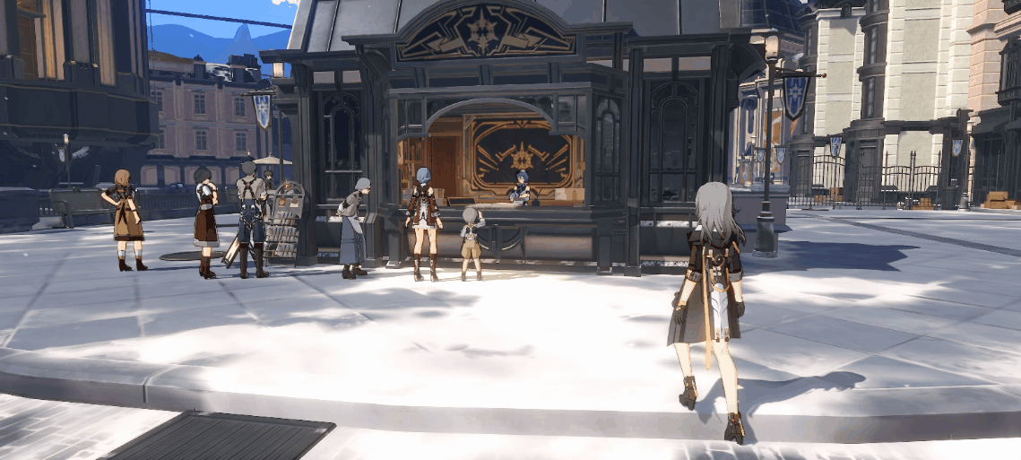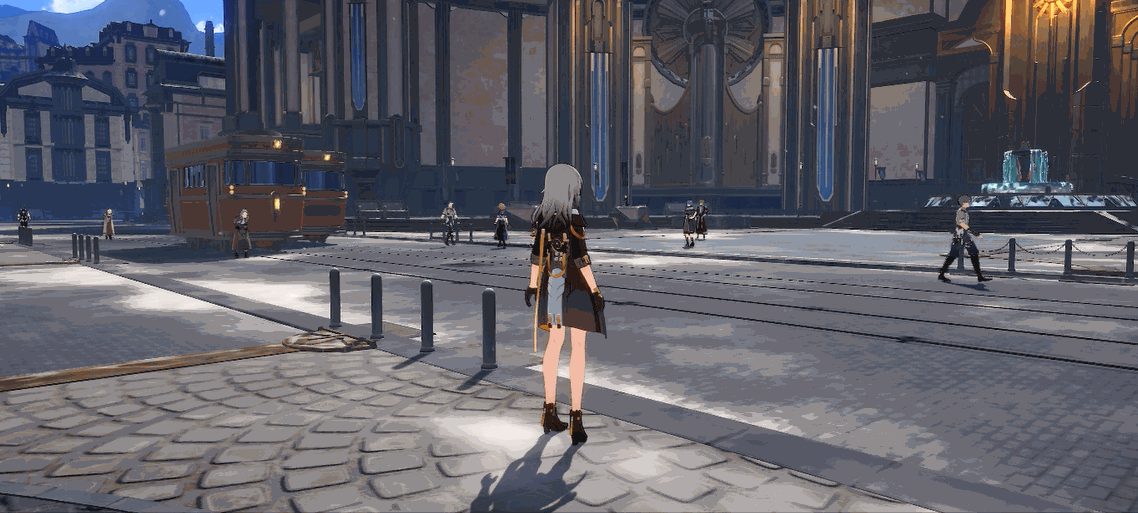 再次抵达贝洛伯格上层区的「行政区」时,开拓者可以看到更多各具特色的城镇居民,他们或是穿行于城镇街道,或是三五成群驻足聊天。主干道上,有轨电车「叮叮号」正忙碌地穿梭于城镇的两头,时而在路边站台停靠,并会通过缓行或紧急刹车的方式避让行人。此外,行政区还加入了更多建筑设施,例如分布在城镇各处的商店、售货机等,通过这样的设计,我们希望开拓者能够感受到更多生活气息和城市氛围。