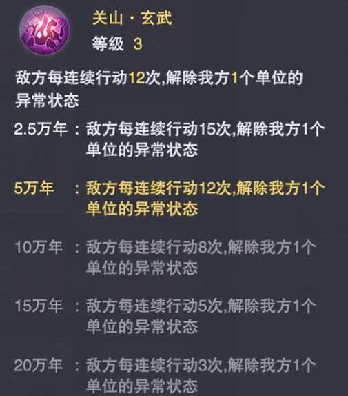 接着第二个魂环我们来说可供防辅系魂师佩戴的【关山·玄武】,此魂环的效果主要是驱散debuff,经过维一的实战体验,维一感觉这个魂环的描述就有非常之大的误导性,其所触发驱散的前提是敌方每连续行动3-15次,而这个“连续”行动维一不知道大家会作何理解,反正我最初的理解是对方必须得在我方没有行动的前提下,连续行动3-15次才能触发此魂环的驱散效果,但实际的体验却是:只要敌方累积行动3-15次即可触发这个驱散效果,所以......我也是醉了哦,不知道这个是官方的错误还是bug所致,不过如果真是累积来算的话,【关山·玄武】魂环的强度还是非常可观的,原因如下: