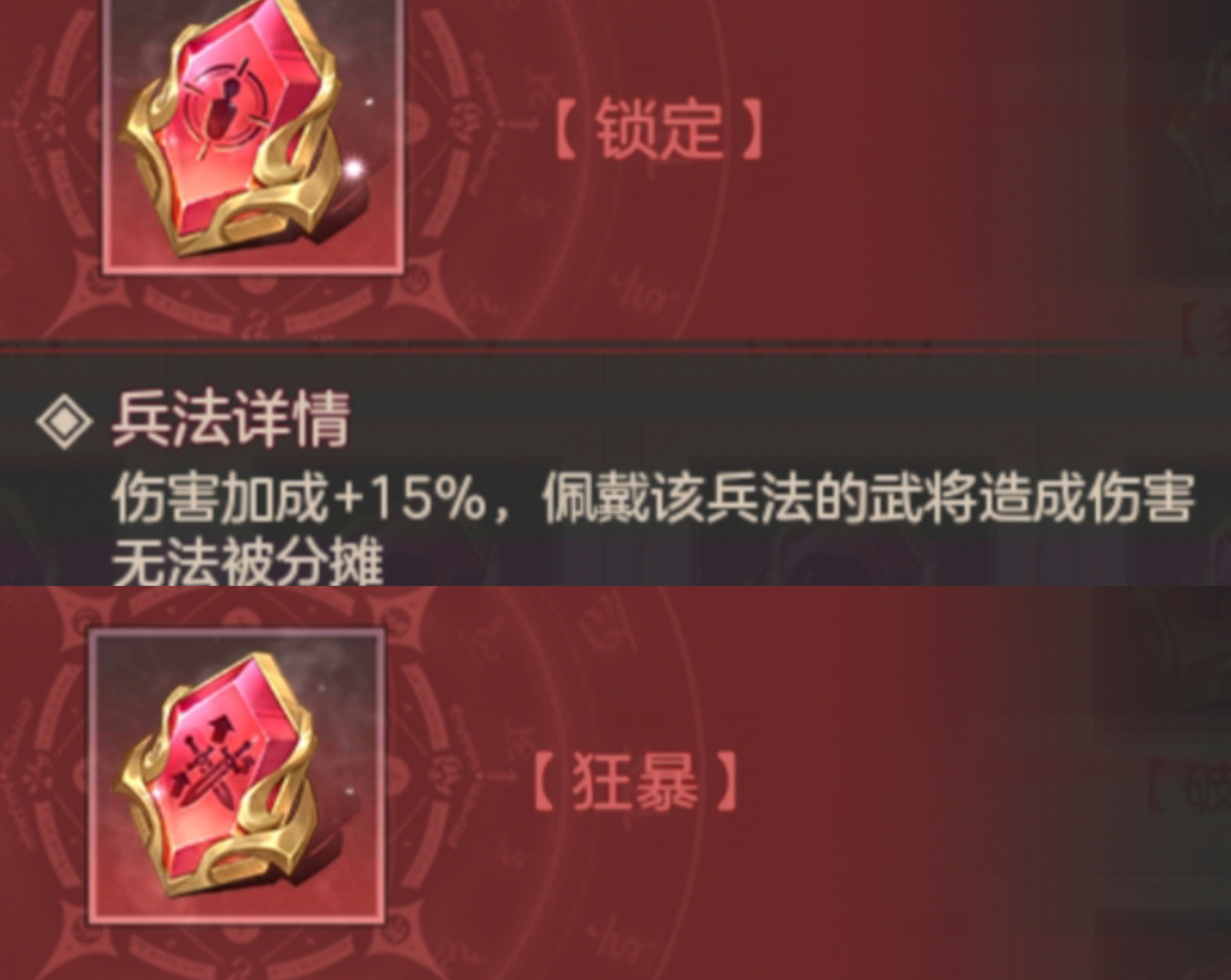 解析:突袭可以加强司马徽的攻击力,狂暴和看破都可以大幅度加强暴击和暴伤,对于走暴击流的司马徽来,这两个兵法是必须品,可以加强水镜效果的伤害。锁定可以增加伤害结算,精准是后期必备的可以针对闪避流的阵容。