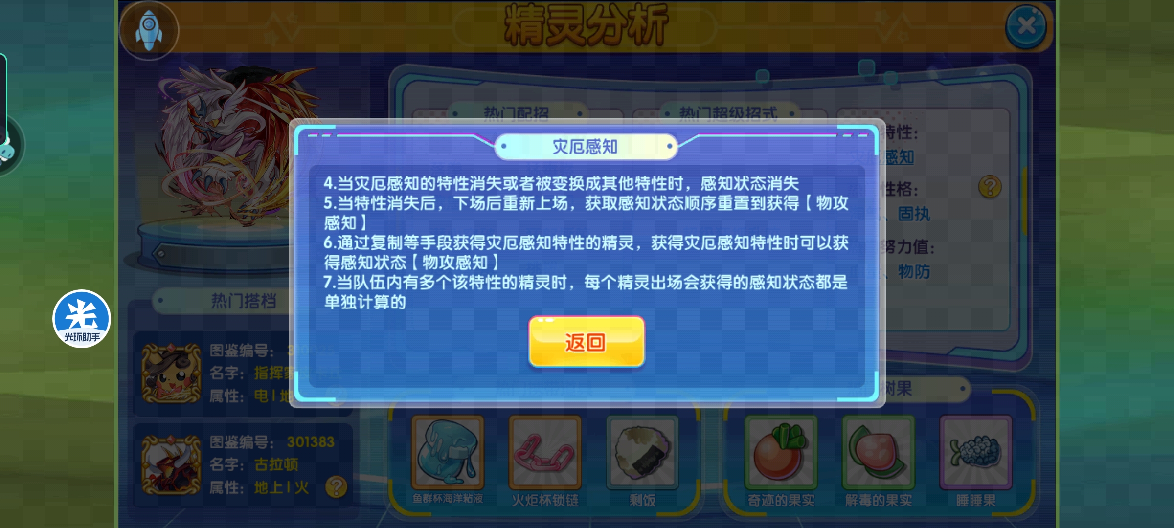 新特性-灾厄感知,为了使得新特性使用,老特性狩猎者、毛皮大爷统统被删了出去,不过,新特性也是十分的不错; 灾厄感知:出场按物攻、特攻、变化的顺序获得感知状态,下场后消失; 其具体信息如上,物攻、特攻感知就是相应类型的输出伤害伤害减半,想当于毛皮大衣或者冰鳞粉,至于变化感知,就是对面变化技能的命中率减半,然后受到伤害减少30%,不过,由于对于必中技能此感知不受影响,所以此感知作用其实并非太大;只能说,综合性较强;由于技能灾厄之角可以切换感知状态,所以在携带锁链与厄运之角时,配上中转队友,那将是肉到飞起的存在;