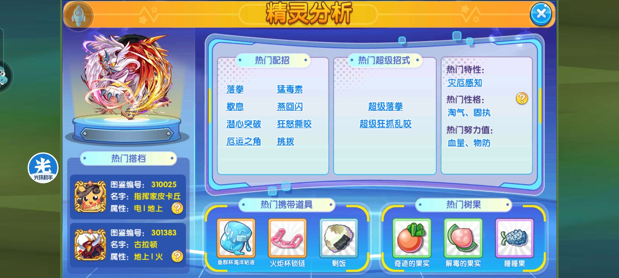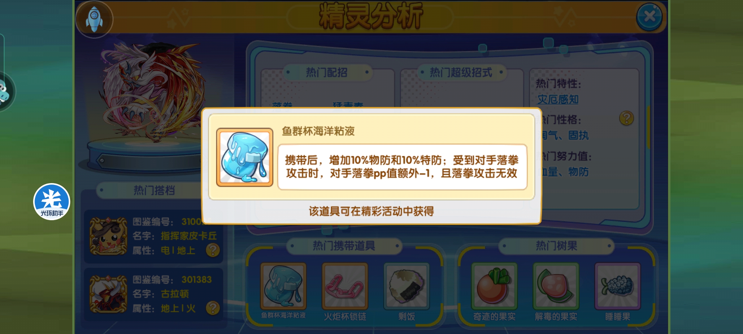 2、海洋粘液增加双防,并且防落拳,当队伍没有处理处理落拳的精灵时,粘液灾兽是一个不错的选择;绝对的百搭,不用担心适配问题;