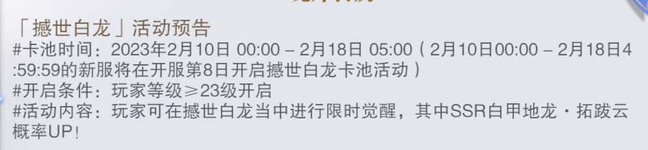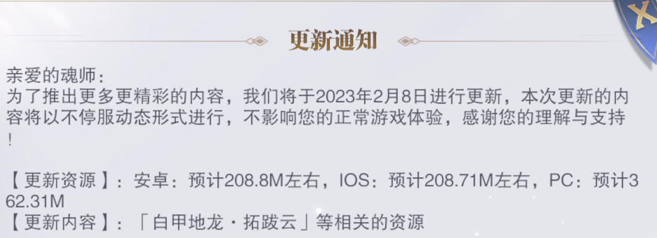 更新本身其实没啥奇怪的,但稀奇的是这次官方居然在没有开测试服的前提下,就提前公布了全新防辅系魂师“白甲地龙·拓跋云”的消息,虽暂时还看不到具体的技能信息,不过就这个拓跋云到底是谁的问题,估计就已经可以让不少朋友喝上一壶了......