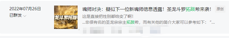 而在去年7月底,维一就已经写过一篇分析疑似全新魂师圣龙斗罗拓跋希的文章,至于为什么在当时会写这篇内容,最大的原因还是不少朋友都给维一发送了如下几张抖音广告中出现的图片......