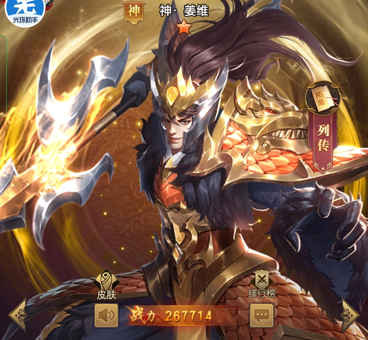 1神姜维2神陆逊3神蔡文姬4神关羽5神诸葛亮