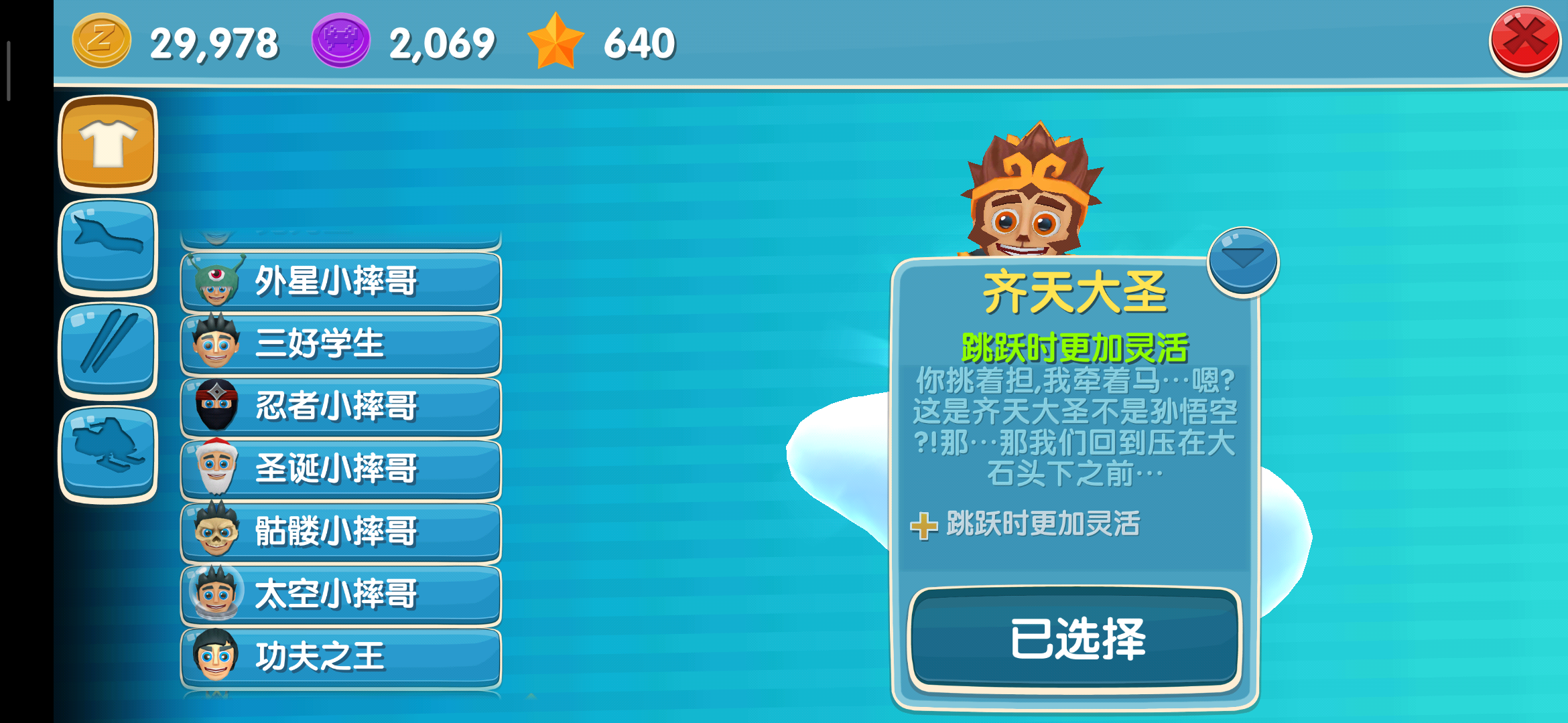 地图里面的彩蛋也有了新的变化,比如半空中有一圈金币,玩家穿过能吃掉全部的金币,在游戏中跳跃起来的状态下向前滑动可以表演特技给自己加分数,还增添了新的场景就是电线杆,玩家能在两根电线杆中间的电线上滑动。游戏开始前玩家可以用金币游戏币购买游戏祝福,可以帮助玩家跑出相当远的距离和高分,而且在滑雪中像蓝色加速器,火箭,老鹰这种有时间限制的道具或动物在屏幕左下角会直接显现出来,玩家可以提前判断道具用完后的下一步打算,而且像蓝色加速器这种道具在游戏中不止可以用一次的,有就可以用!