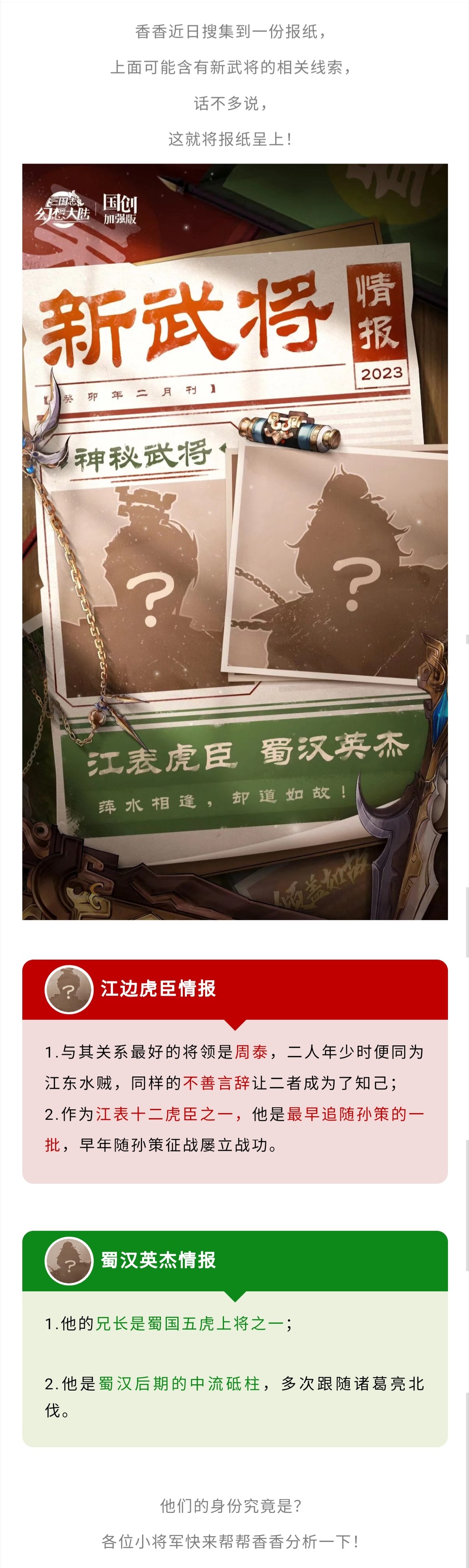 新武将情报|江表虎臣 蜀汉英杰