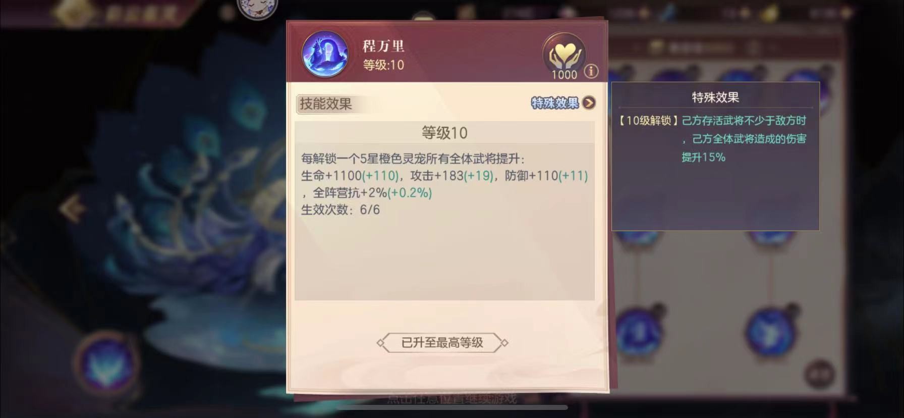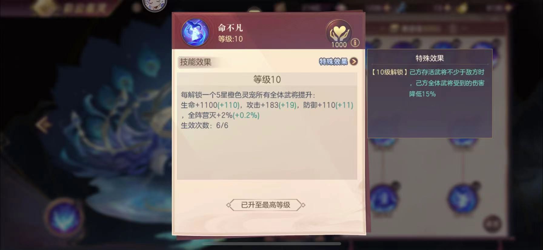 技能的触发条件也算非常容易,人数不少于对手,即开局就能生效。升级到10级激活技能必然是第一步,激活技能后依然可以继续升级,获取等级带来的抗灭属性,满级是15级(善灵得5级)。对于抗队来说目标为左15级+右10级,灭队反之,左10级+右15级。