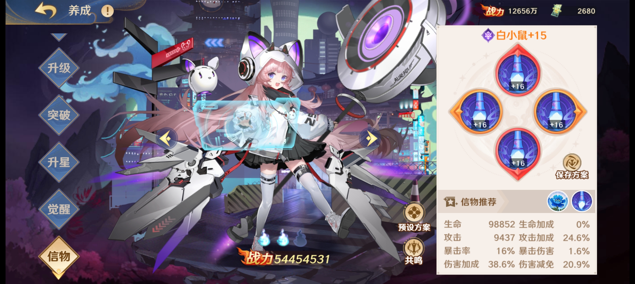 目前阵容所需要的角色,需要去核心培养的就是小白鼠,还有我们的蜈蚣和主角溺姬。其他的培养不需要太过投入。