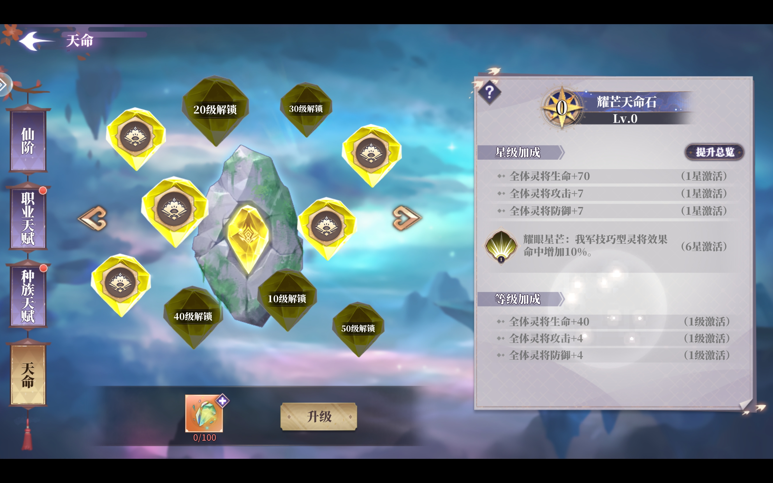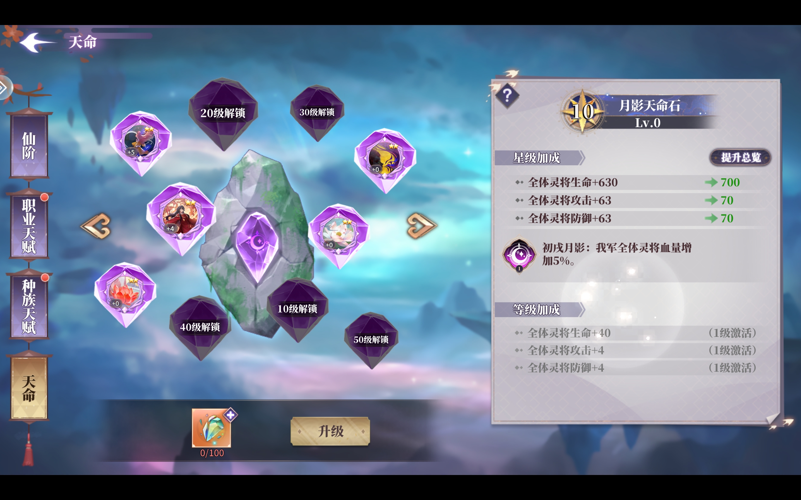 在升级方面,紫色神话卡因为比较容易开卡槽所以可以先提升紫色天命石,之后提升万象天命石,最后选择其他合适的天命石进行选择性升级。