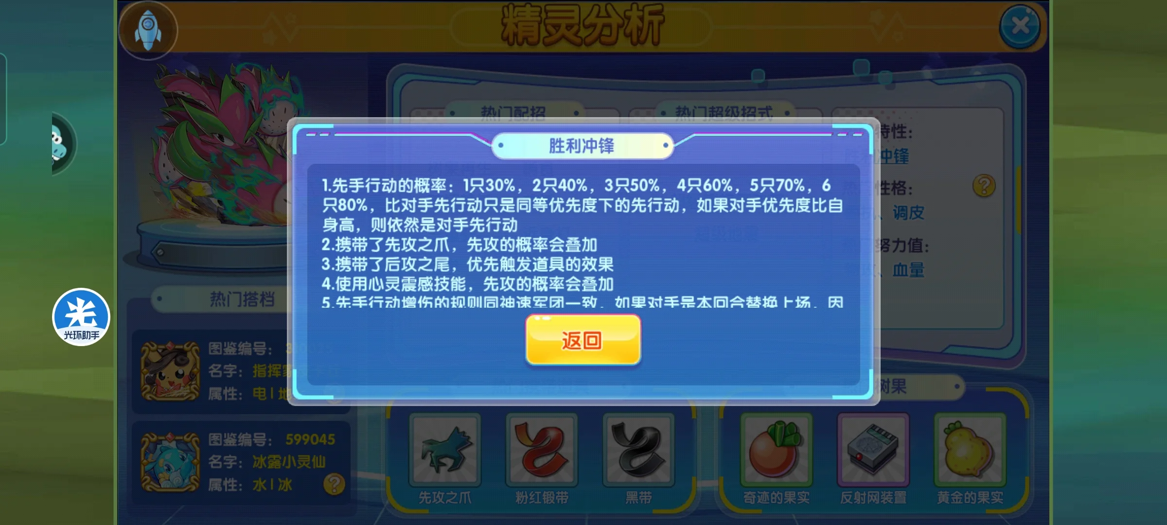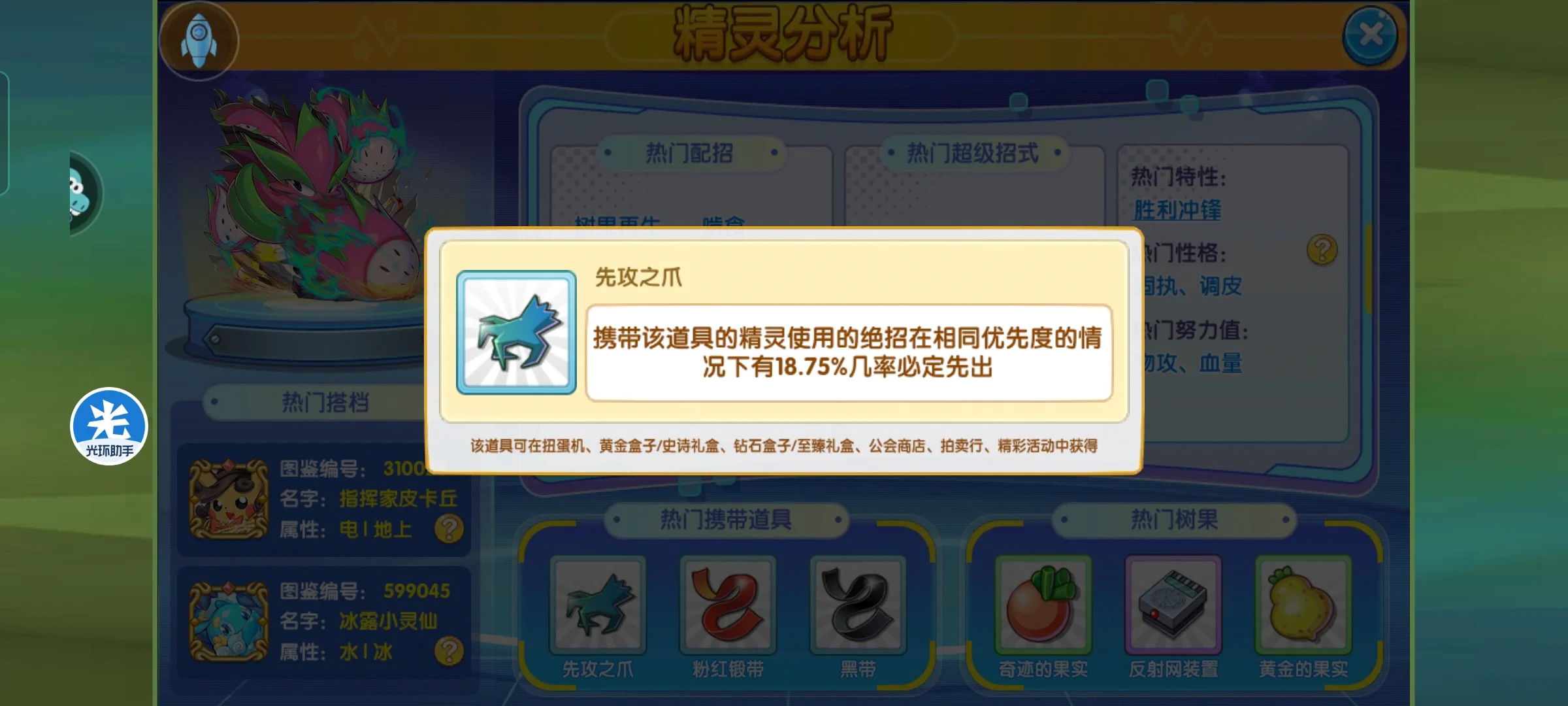 因为队友越多,先手率越高,所以我建议芒芒火龙果作为队伍首发使用,道具我建议携带贺岁杯之爪,没有的话就用先攻之爪,毕竟80%概率虽然高,但也是有概率被对面先手;而且火龙果的速度很慢,没有特性几乎没有先手的可能;