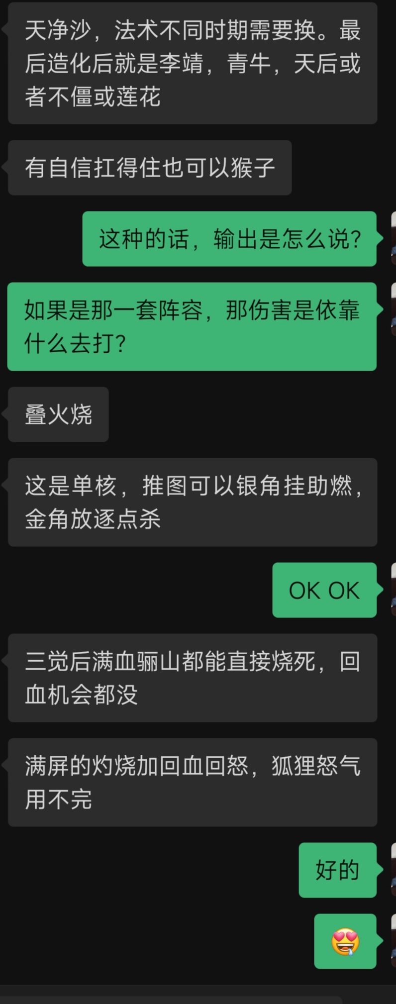 这一套和冥界敢死队的原理其实是一样的,这一套唯一不同的就是去依靠狐狸的灼伤配合输出,具体的法术其实我还是不明白,但是我就简单介绍一下嘛,命格搭配肯定是要做到一个突出灼烧的效果的。