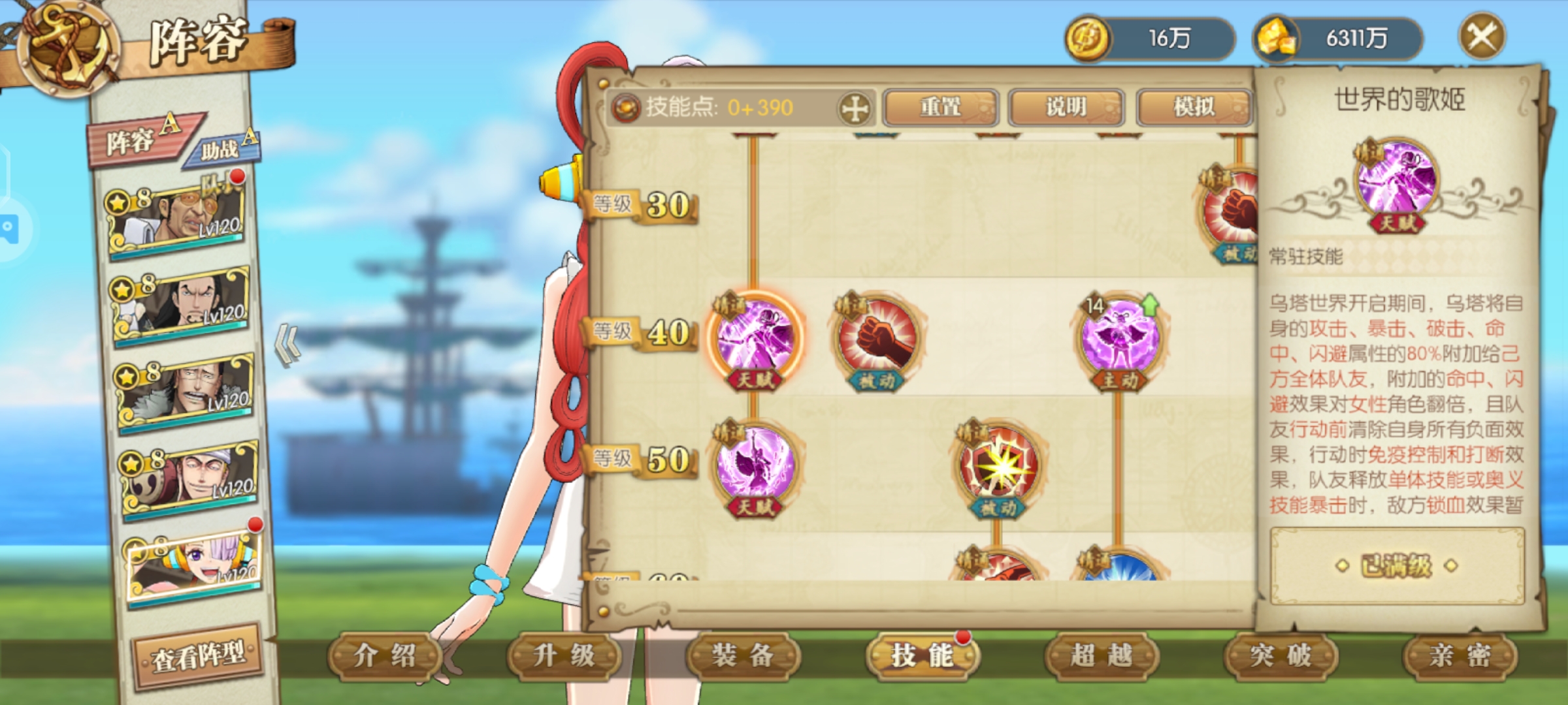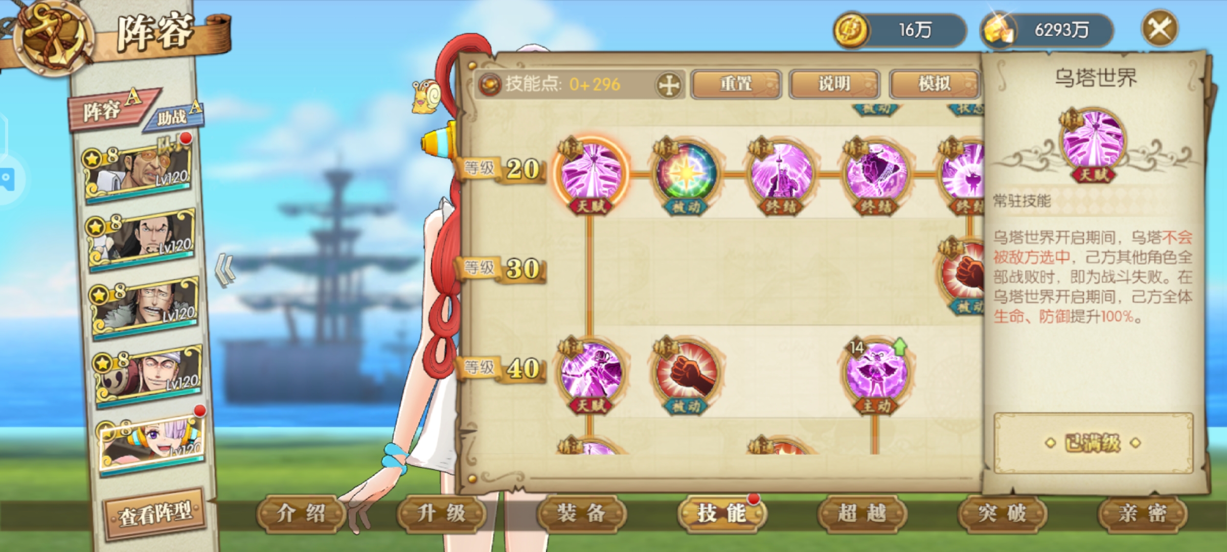 三个主动效果就放舒服的主动有点用百分百封技算是,但是因为乌塔绝大部分时间都处在奥义延展状态所以主动聊胜于无